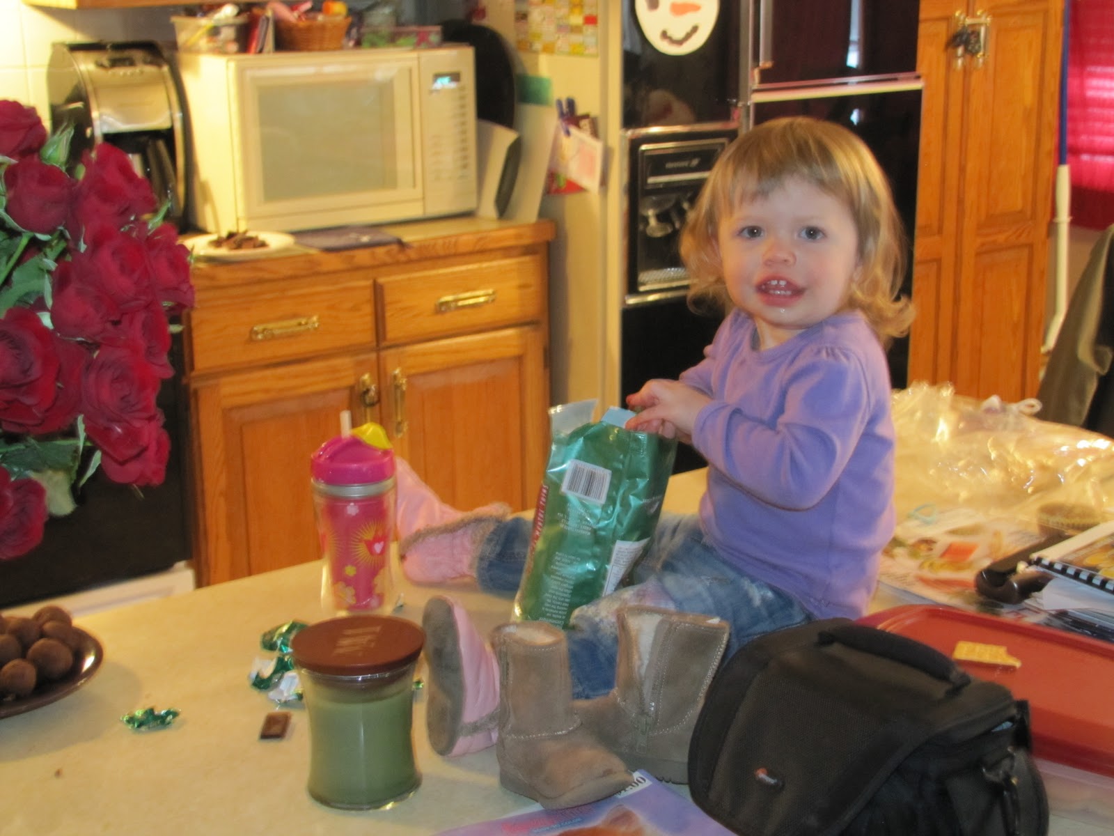 I would like to say Lilly helped, but not so much. She was too busy getting every single diaper out of her drawer and scattering them around the living room. Little stinker!