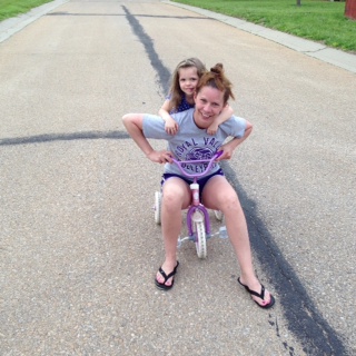 Just wanted to share a couple pictures I took on my phone. Lilly has been working so hard lately to ride her trike all the way around the block. About 3/4 of the way she needed a break, so I had to drive.